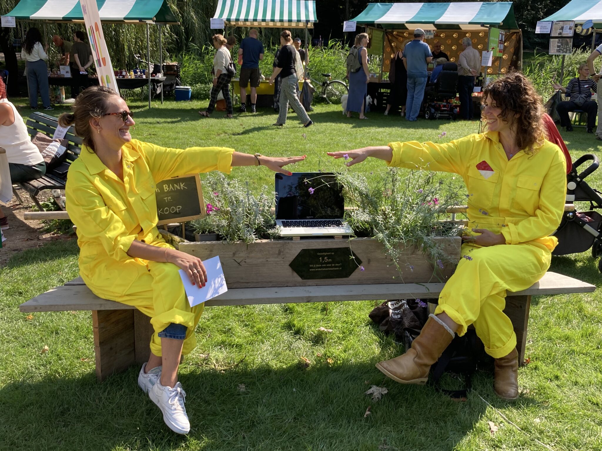 Door de Corona-maatregelen en de lockdown vereenzaamden mensen: velen hebben maanden hun buren niet gesproken. Sommige ouderen konden hooguit van achter glas naar hun familie zwaaien. Wij bedachten daarom een bank waarop twee mensen weer bij elkaar konden zijn op een veilige afstand, met vrolijke bloemen tussen hen in: de anderhalve meter bank. Dit als positieve verbindende bijdrage aan het community-gevoel.